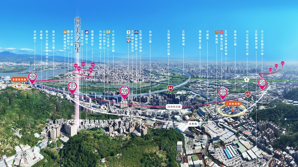 不同於現今個案多位於洲子洋重劃區內,位於五股御成路的「微美之星」擁有「離塵不離城」的環境特色,享有2分鐘車程直達五股市區,5分鐘接軌洲子洋商圈優勢,鄰近全聯、家樂福、國民運動中心等便利生活機能,一次囊括純住宅環境的寧靜與私密。加上8分鐘可達國道一號交流道,還可串聯台64、台65快速道路,通勤可快速連結新莊、三重與台北市區,未來五泰輕軌完工後,五股的交通便利性將再度提升,為區域增添更多增值潛力。
