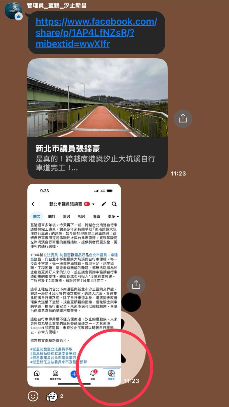 何元楷指出,他在罷免廖先翔「齊心斷翔」的官方LINE社群裡面潛伏已久,偶然間發現官方社群管理員發出一則張錦豪臉書發文的連結,下面還附了一張臉書截圖。他檢視截圖的右下角,發現竟然是擁有張錦豪粉專權限的畫面,「這不就表著罷免廖先翔的人,就是張錦豪本人嗎?」