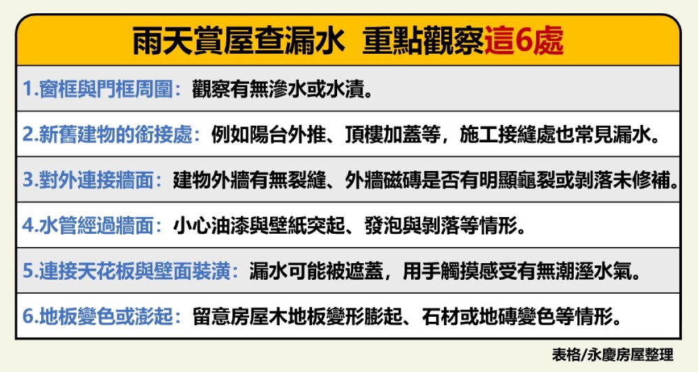 雨天賞屋教學 永慶房屋整理6重點辨識漏水屋
