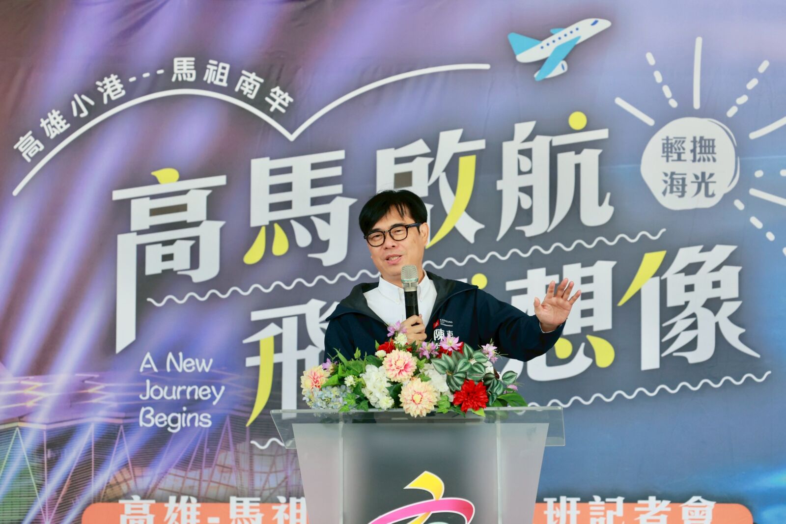 「高雄-馬祖」定期航線,睽違20年今(29)日正式重啟,高雄市長陳其邁、國民黨立委陳雪生以及連江縣秘書長張龍德共同出席啟航記者會。陳其邁表示,連江、馬祖與本島交通問題長年棘手,如今定期航班成功重啟,未來航班班次「只能增加、不減少」。