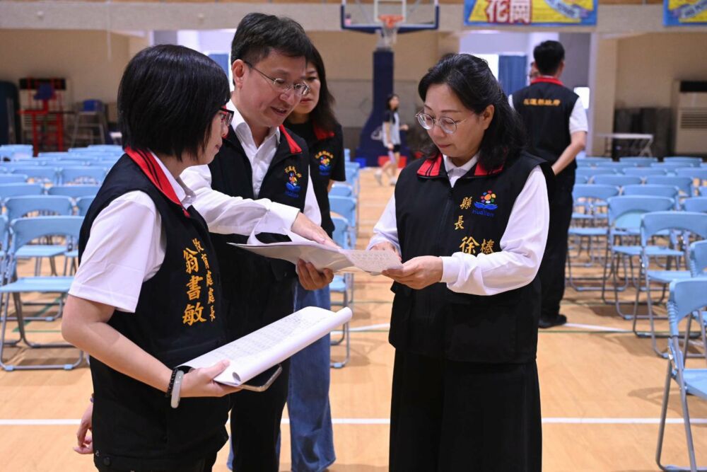 此外,今日下午3時至5時開放考生看考場,徐榛蔚親自巡視考場各動線規劃,也為前來提前看考場的考生們打氣;並參與監試委員說明會,尤其徐榛蔚特別確認花蓮縣府考生服務站提供用品像是礦泉水、寶礦力、口罩、衛生紙、黑筆、2B鉛筆、橡皮擦及透明墊板等項目,務必準備齊全。