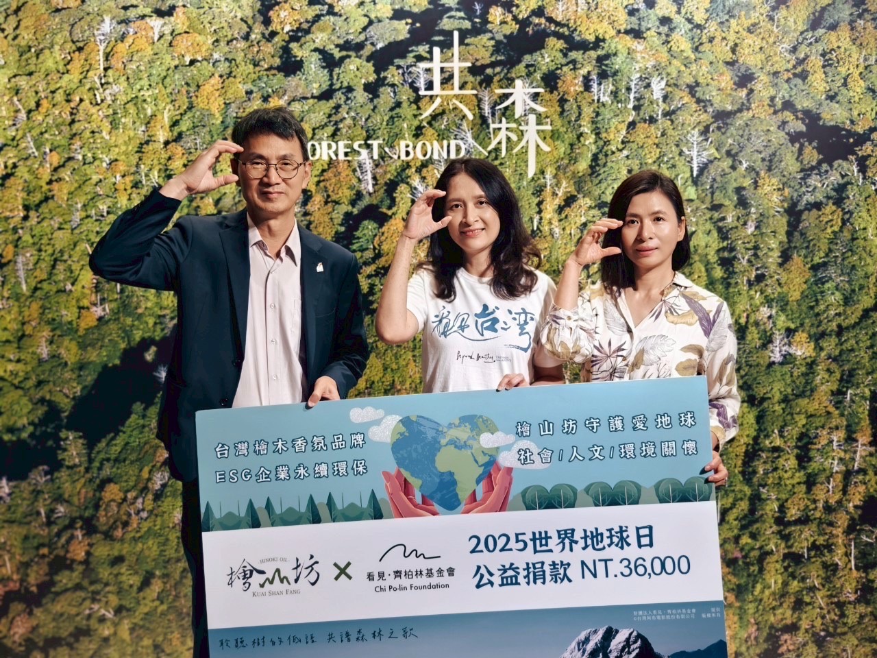 響應422地球日,台灣檜木香氛品牌檜山坊將當天木木自然官方商城與直營門市全日營利所得捐贈予看見・齊柏林基金會,支持台灣山林環境守護與環境教育推廣,展現企業社會責任精神。雙方日前齊聚位於淡水的齊柏林空間,由檜山坊創辦人李清勇與黃素秋代表捐贈,並與齊柏林基金會副執行長林穎儀一同合影,象徵企業與公益攜手同行,用行動傳遞看見台灣、關懷土地的美好願景。