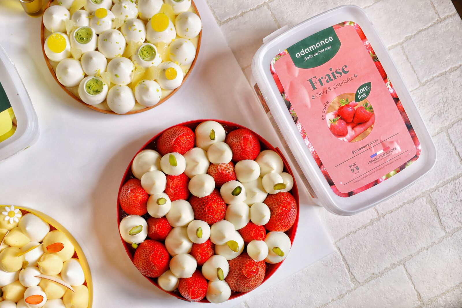 艾達曼果泥以單一產區水果為原料,透過巴氏殺菌製程技術,保留水果原始色澤與風味層次,無額外添加糖、香料或防腐劑。每一口果泥皆如現摘水果般鮮活飽滿,不只是一項原料,像是將產地的陽光與果園的空氣封存在甜點之中,讓甜點師能夠以水果的原味作為創作主軸,進行自由發揮與風味延伸,詮釋天然就是最好調味。