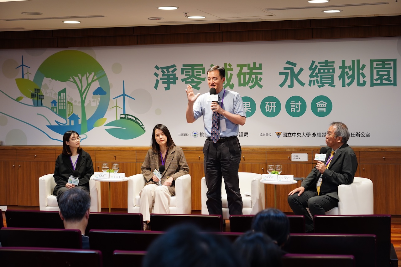 為加深市民對氣候議題的理解,活動現場設有「氣候變遷與淨零成果展示區」,從交通、能源、資源循環等層面,系統性展現桃園的具體減碳成果,讓永續不再只是抽象概念,而是市民可實踐的生活方式。此外,活動邀請台灣青年氣候聯盟理事張寒瑋與國家環境研究院主任周國鼎進行專題演講,分別就「淨零公正轉型」與「綠領人才發展」議題進行深度分享,引導青年思索自身在永續未來中可扮演的角色與責任。研討內容也張貼於桃園市碳中和資訊平台網站,供各界瀏覽參考。