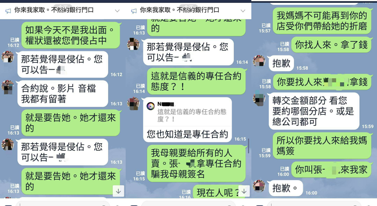 ▲▼ 查閱政府實價登錄行情,發現樓上實際成交價格為1845萬元。另外,對於信義房屋店長與奶奶與女兒的Line對話,其服務態度讓奶奶家人很痛心。