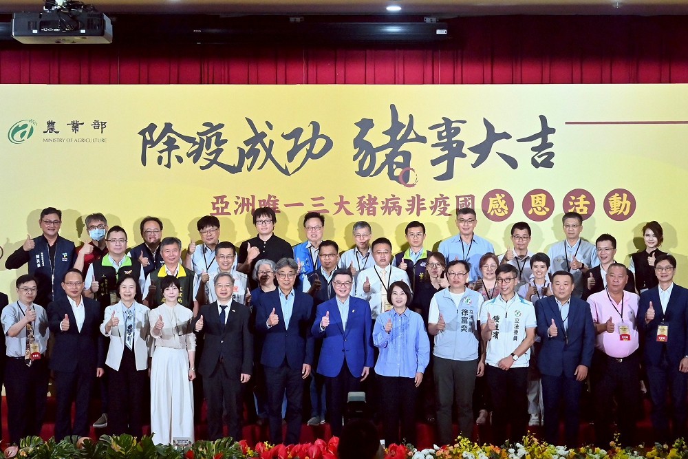 台灣日前正式獲得「世界動物衛生組織」(WOAH)認證,成為亞洲唯一沒有非洲豬瘟、傳統豬瘟、口蹄疫等3大豬病的非疫國。對此,行政院長卓榮泰昨(7)日前往農業部高雄區農業改良場出席活動時強調,除疫成功不代表永遠免疫,豬隻是國人活力、體力與營養的來源,因此未來的工作仍相當漫長與艱鉅,不容許有一絲疏忽、破口與冒險,政府會永遠與豬農朋友站在一起,做大家最佳後盾,共同攜手合作繼續向前邁進。