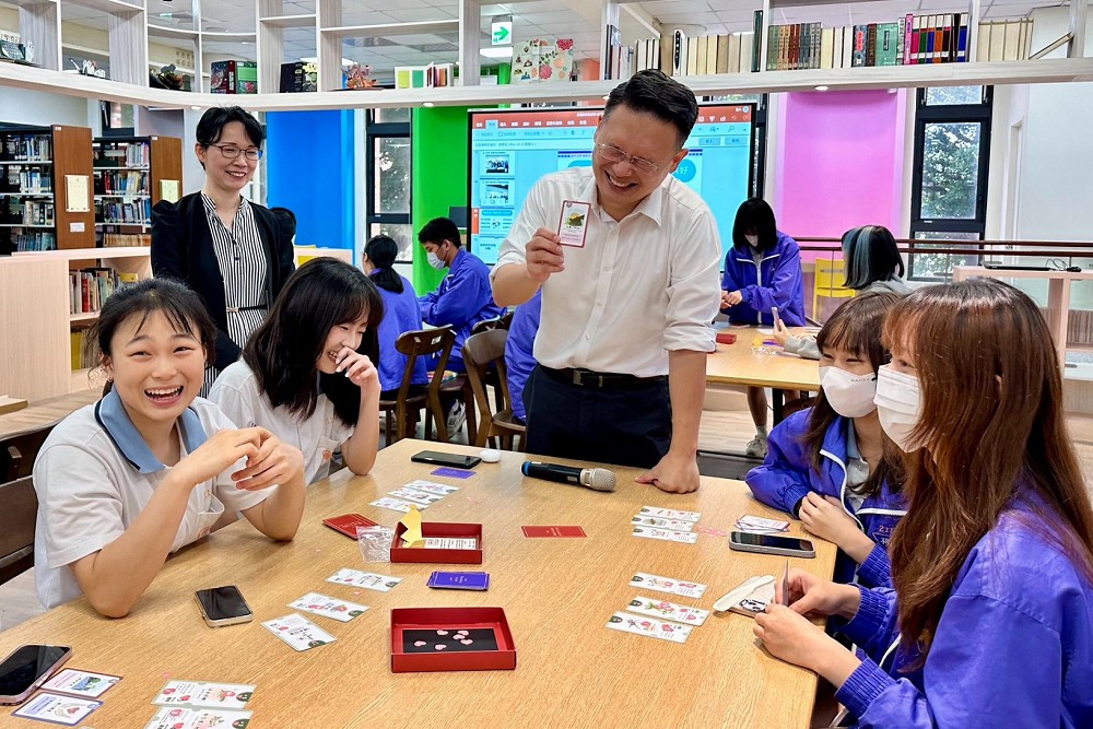 蘇俊賓表示,他一直惦記著同學們的邀約,這陣子正值議會開議期間,真正可以成行的時候,幾位當時設計的同學都畢業了。但沒想到,這兩款桌遊的設計者,包含范姜宜希、葉紫嫣等同學,特地回到學校與他分享這份創意,讓他深受感動。