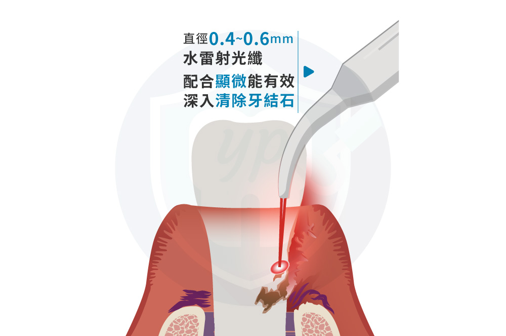 在牙周病治療的第一階段,傳統牙周刮治術雖可移除牙結石及部分感染組織,但無法徹底清除深層細菌與炎性組織,導致治療效果受限。而「微創顯微水雷射牙周治療」,透過顯微鏡的輔助讓醫師能夠更精確地治療,並且縮小治療範圍,更為微創,患者的恢復期也大幅縮短。