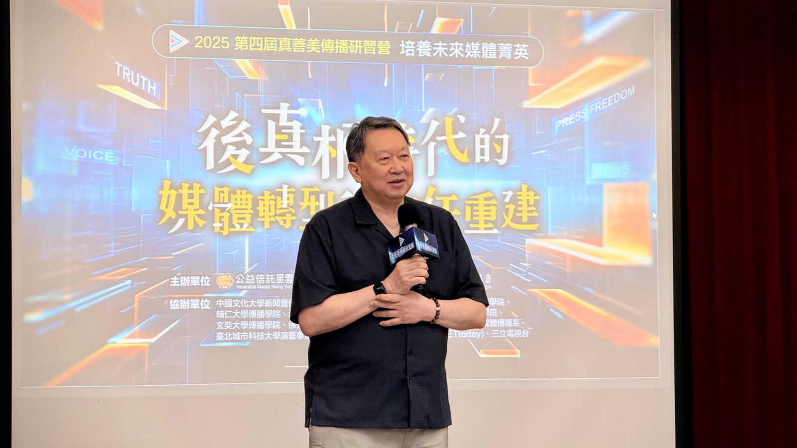 由公益信託星雲大師教育基金與社團法人中華文化推廣協會共同主辦的「2025第四屆真善美傳播研習營」6月21日正式開幕。今年營隊程天數擴大為五天,以「後真相時代的媒體轉型與信任重建」為主題,集結全台35位重量級媒體人、學者、政論名家與知名網紅授課,吸引超過十所大學、逾50位學生經甄選參與,展現強大號召力。