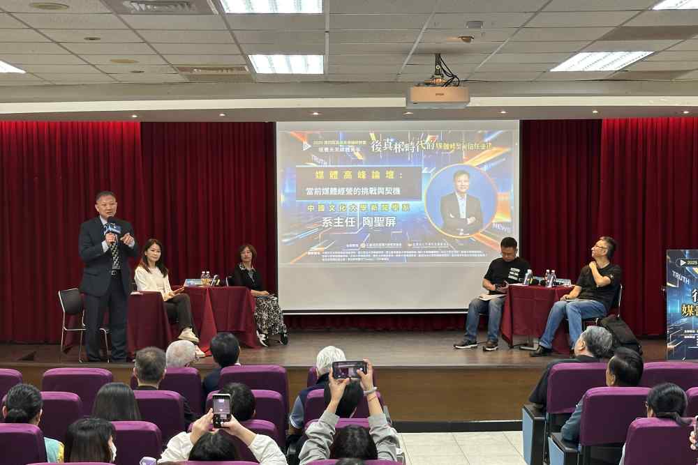 開幕當日也舉行兩場重磅論壇。上午的高峰論壇以「當前台灣媒體經營的挑戰與契機」為題,由中國文化大學新聞學系主任陶聖屏主持,邀請公共電視副總經理謝玒玲、聯合報總編輯王茂臻、中視董事長盧秀芳、梅花媒體集團總裁王綽中同台,深入剖析媒體面對信任危機、廣告衰退與平台競爭的因應策略。