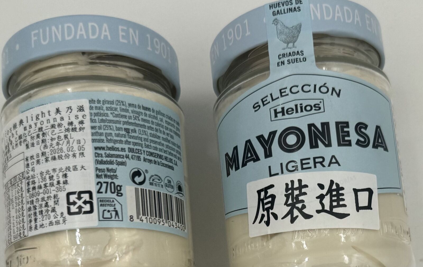 該批違規的西班牙「美乃滋」,製造廠為DULCES Y CONSERVAS HELIOS S.A.,牌名為HELIOS。