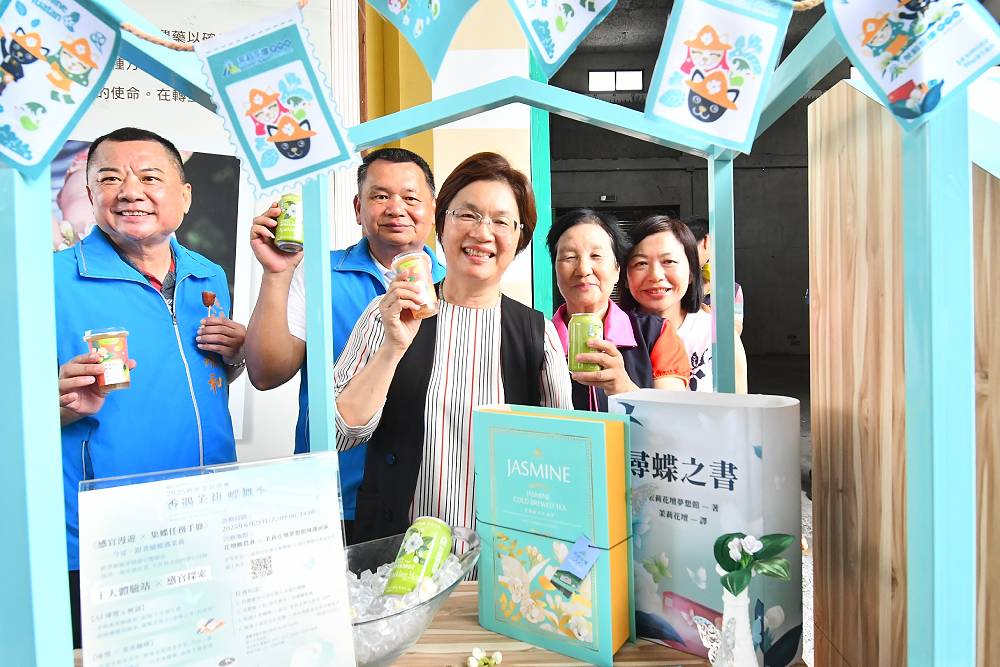 顧碧琪表示,花壇的無毒茉莉花茶今年再次前往日本銷售成長3倍,花壇有茉莉花及竹筍農特產品,藉由這次活動嶄露頭角被大家看見;今年活動有3大亮點,分別為「感官體驗」、「集蝶任務」及「AI智慧導入」。她指出,現在農友年紀偏大,除了希望有更多青農投入外,農業也要跟上AI潮流,用AI做一個語音導覽,讓大家可以了解花壇產業文化、在地故事。
